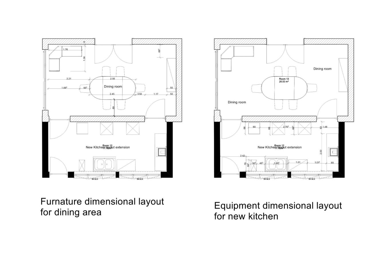 The 3D view on the right presents a captivating perspective of the proposed dimensional plans above for remodelling the dining and kitchen areas, illustrating the seamless integration of utility rooms, loft conversions, and W/C and shower rooms. This comprehensive approach to design not only enhances functionality but also maximises available space, ensuring that every aspect of the home is both practical and aesthetically pleasing. By continuing with the 3D drawings, homeowners can visualise the flow and layout of their new spaces, making informed decisions that reflect their unique needs and preferences.