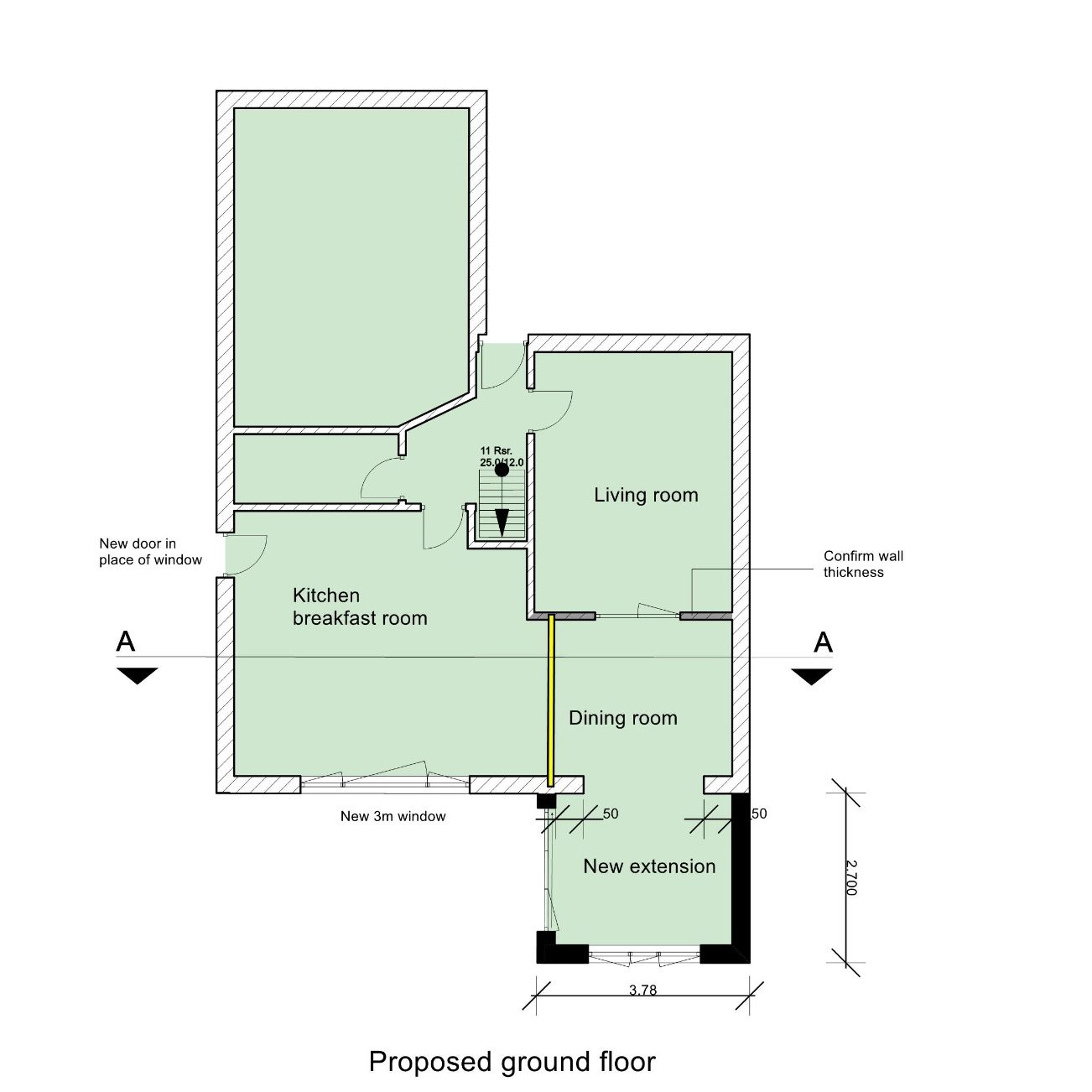 Download more details of this project showing elevations, section AA with building regulation drawings, steel work layout with calculations.